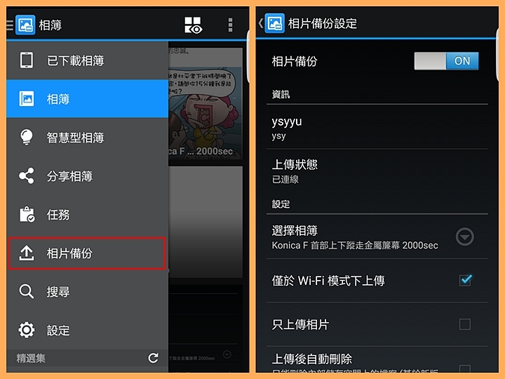 ▼還有,一個比較好用的功能就是,它可以上傳備份你手機或平板裡的照片檔案到Synology的伺服器上,完成資料移轉或備份的需求,這點筆者認為相當好用。
