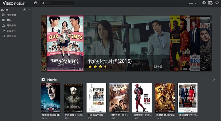 ▼一旦成功設定好,在進入Video Station首頁時,全新設計的使用介面簡直讓人愛不釋手,上面的橫幅不僅美觀,也會以幻燈片模式輪流展示出最新加入的影片,另外也提供影片推薦的功能,讓使用者能透馬上就能掌握最新影片的資訊。