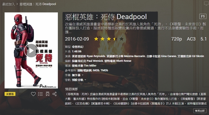▼至於喜愛的電視影集,同樣的也跟電影影片呈現方式一樣,不過相關資訊就沒有電影片呈現的那麼多,只有劇情摘要等等而以。