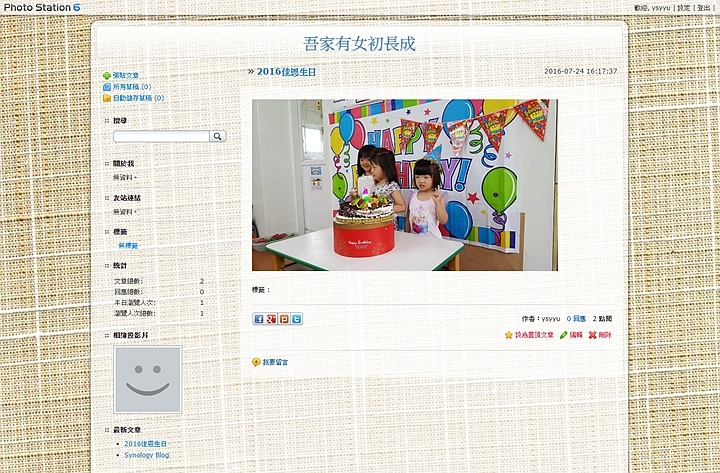 如果,你嫌相片分享太過簡單、無趣的話,Dsm 6.0的Photo Station,還提供個人網誌的功能,能將你要分享的內容,變的更豐富,更有內容。