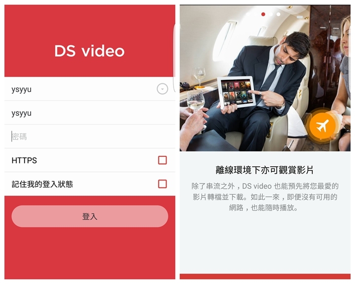 ▼至於行動裝置用戶,當然更方便的是直接下載DS VIDEO這個APP,輸入連線的帳號密碼後,馬上就能連線到Video Station了。同時DS VIDEO也能下載影片檔案到你的行動裝置上,這樣可以離線觀看,就算沒有網路也能觀賞影片。