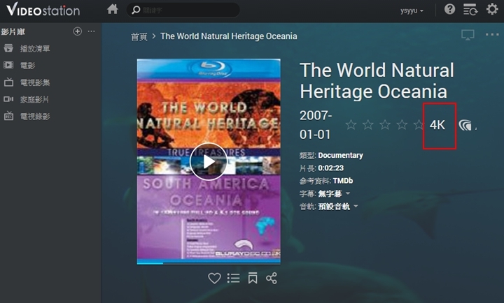 ▼筆者找來一段4K影片,來測試DS916+的能力,可以看到Video Station能夠辨識出4K影片格式。