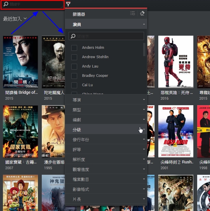 ▼在面對密密麻麻的眾多影片時,你可以透過搜尋方式,甚至影片篩選器,針對喜愛的演員或是導演,影片類型..等等,來選出你想要看的影片,真的是超方便!!