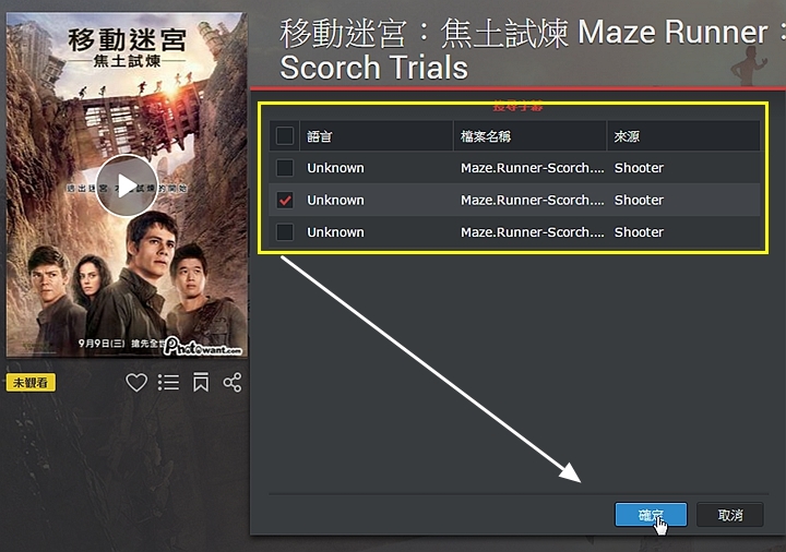 ▼所以只要點選影片功能裡面的"搜尋字幕"功能,Video Station就能幫你找到相關的中文字幕檔,再點選好想要的字幕後,播放影片時就能自動幫你加上去,再也不用擔心菜英文了!