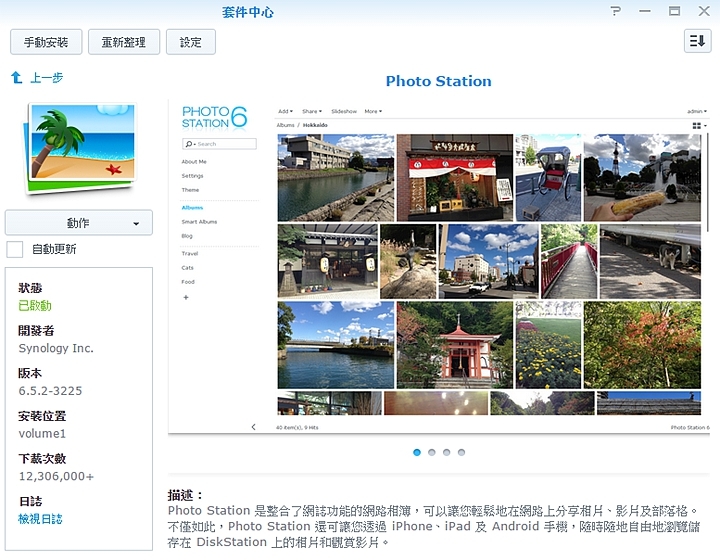 ▼Photo Station這個套件軟體要從官網套件中心下載,並DSM套件中心中安裝上去,過程十分簡單。