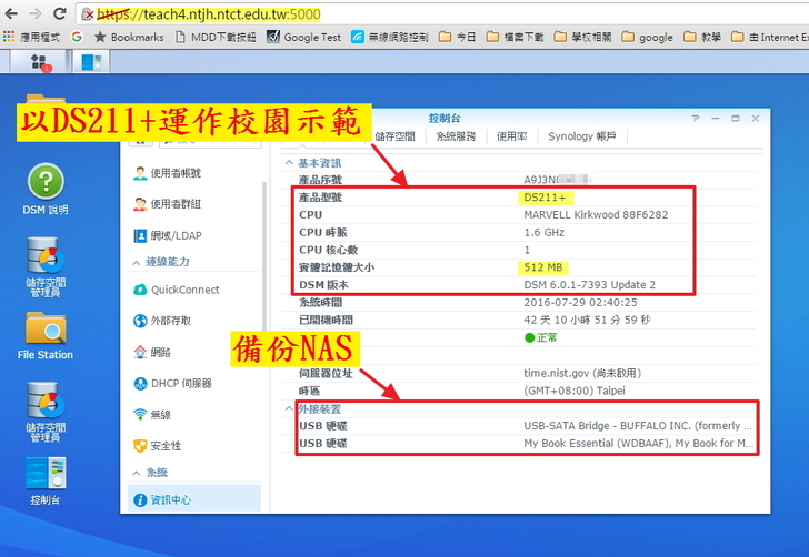 【▼】以下是台南樹林國小楊主任利用synology NAS,架設photo相片薄