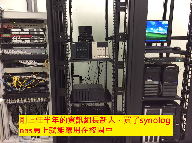 筆者學校的資訊工友,暑假期間曾聽6天的windows 2012伺服器架設、6天的linux伺服器架設、3天的虛擬機應用研習,學完後有聽沒有懂,更不敢嚐試用到學校環境,不過對於我日後使用NAS的操作上有很大的幫助。在往後的日子中,不斷將NAS的功能應用於校園的行政工作、教學工作、網管等,真的發現Synology NAS真的是網管人員的瑞士刀,進而對一些真正的IT研發與維修人員肅然起敬。