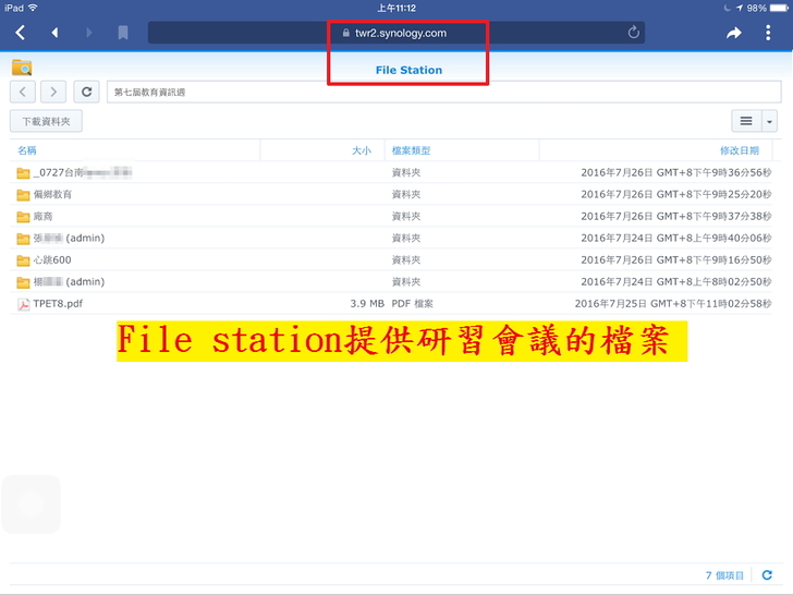 【▼】以下是台南樹林國小楊主任利用synology NAS,利用File station提供研習檔案分享
