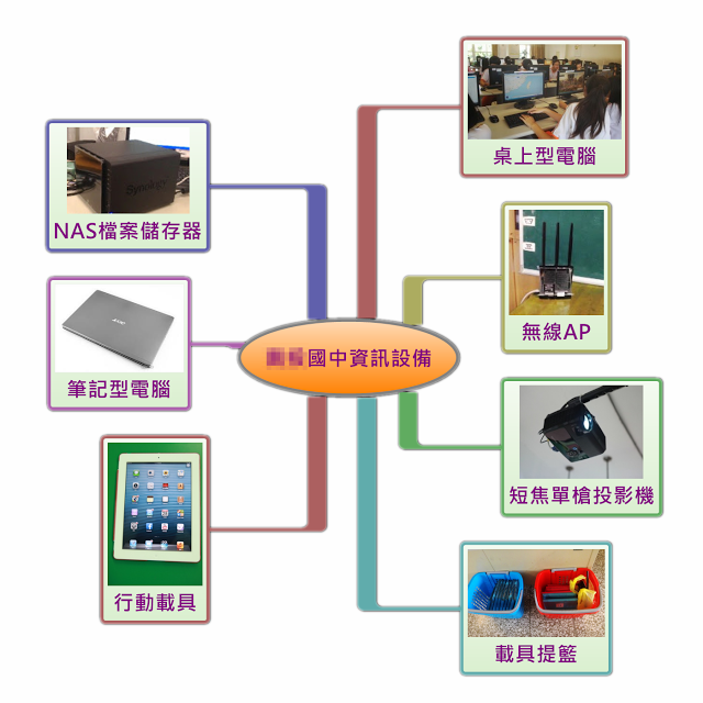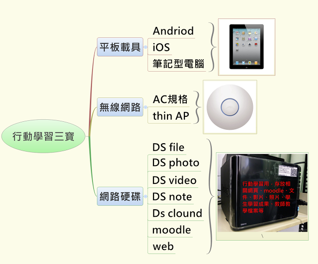 【▼】本校行動學習的主要硬體:平板載具、無線網路、網路硬碟