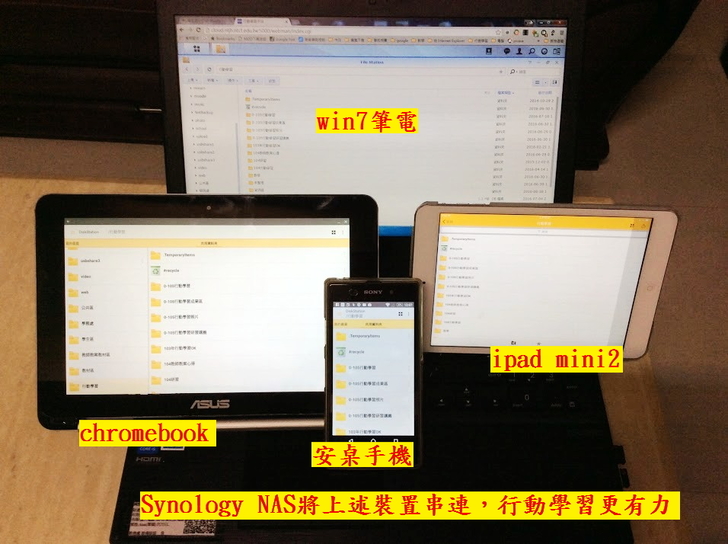 【▼】ios平板、安卓手機、 chromebook、win7筆電,四種硬體和四重作業系統都支援Synology NAS