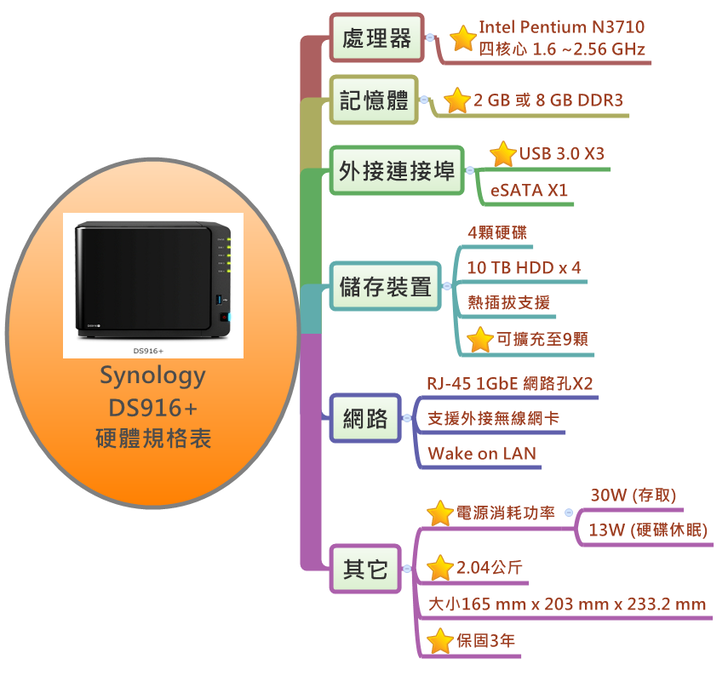 【▼】Synology DS916+的硬體規格,星號表示升級的地方