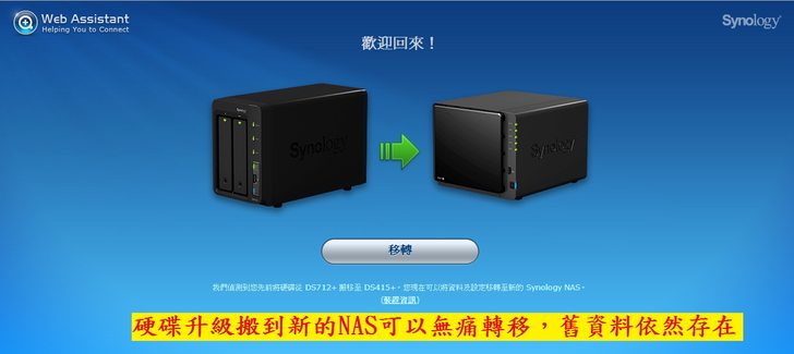 【▼】如果是從舊的synology的硬碟升級到新機器,可以無痛轉移