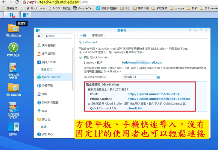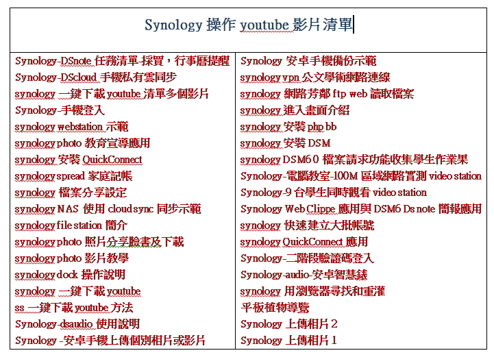 【▼】以下是台南樹林國小楊主任利用synology NAS,架設檔案分享連結