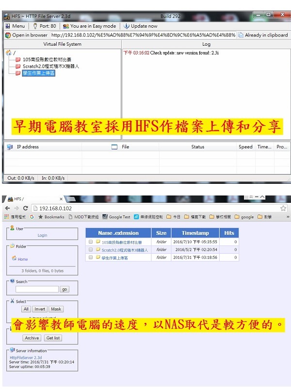 【▼】應用示範-早期電腦教室採用HFS作檔案上傳和分享