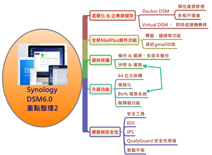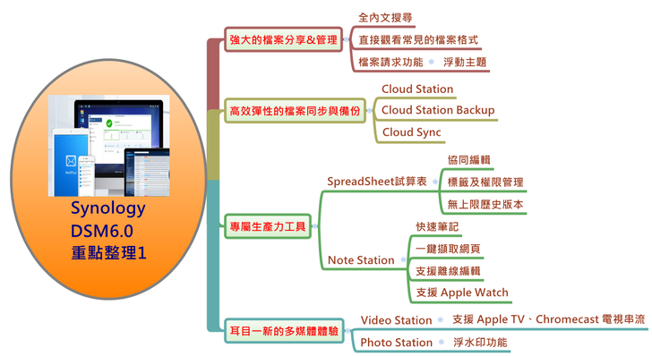 DSM6.0多了許多功能如btrfs檔案、叢集、Docker、虛擬機等概念,本次文章較少著墨,主要放在年初編寫的文章[心得] 國中小校園應用 Synology DSM 6.0 校園運用,筆者使用DS211+(五年前的NAS)來詮譯NAS的實際運用,雖然可以跑DSM6但運作起來速度會稍嫌鈍鈍,所以,強力推薦Synology DS916+,強悍的硬體規格,可升級到9BAY和8G記憶體,對於個人和學校可以快樂的使用五年,Synology DS916+針對校園和中小企業應該是足夠的。