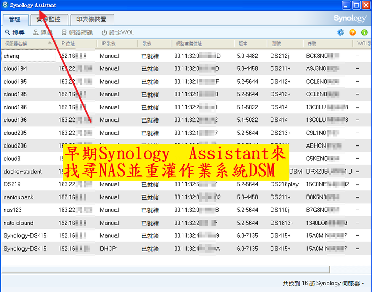 【▼】早期使用Synology Assistant來找尋同網段中的NAS(必須先去官網下載程式)