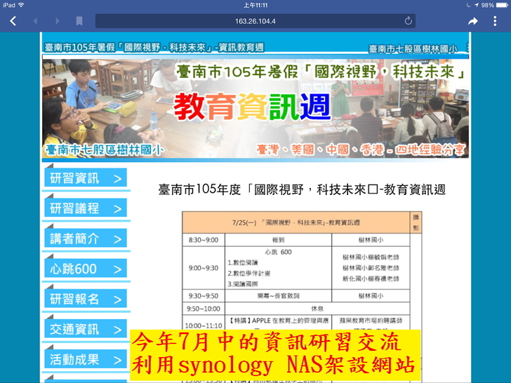 【▼】以下是台南樹林國小楊主任利用synology NAS,架設資訊研習交流網站(webstation)