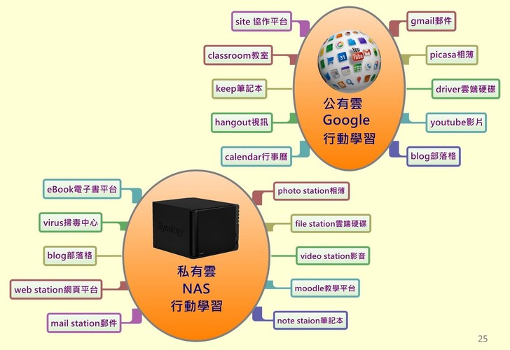 【▼】Google公有雲、Synology私有雲在行動學習的運用對應