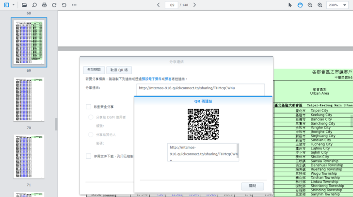 【▼】使用文件檢視器開啟的文件都可以進行分享,除了可以設定分享期間外,分享連結還可以轉成時下最流行的QR Code,連結輕鬆掃。