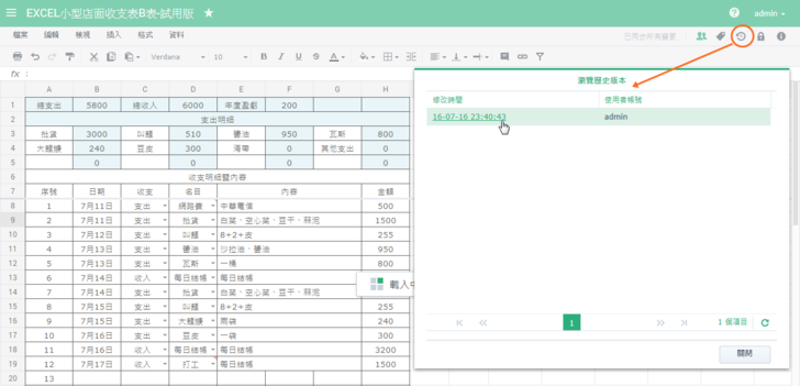 【▼】假設某日更改了某些內容,但最後被新資料給覆蓋了,能否挽回資料呢?答案是可以的,只要點選右上角回溯圖示,就能查詢所有更動的歷史版本。