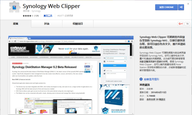 【▼】前面有提到語音插入時,最好使用Chrome瀏覽器,這是因為Note Station最貼心的服務就是要靠Chrome來達成阿~Synology Web Clipper是一個Chrome瀏覽器的外掛擴充,主要功能可擷取網頁內容並將其儲存到DS916+上。並可以儲存包含文字、圖片和連結的完整網頁,好處就是能節省管理瀏覽器書籤的時間。透過 Synology Web Clipper,可以輕鬆使用 Note Station 來存取所擷取的內容,並新增標籤與註解來管理該內容。