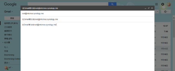 【▼】測試一下,以Gmail寄信給root@mtcmos.synology.me。