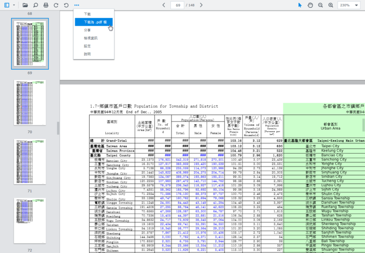 【▼】文件檢視器開啟EXCEL試算表,能針對表格內容作搜尋,另外還能下載成PDF檔,算是相當的人性。