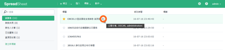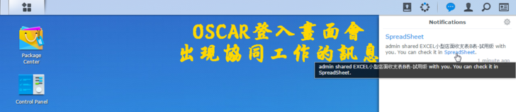 【▼】接著可以看見以OSCAR登入時出現SpreadSheet協同作業的訊息。