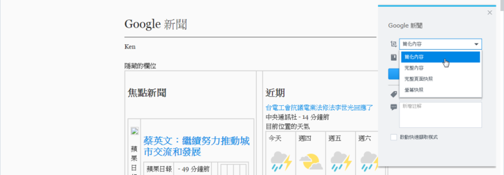 【▼】Synology Web Clipper網頁摘錄可分成簡化、完整、完整頁面快照與部分區域的螢幕快照,圖為Synology Web Clipper簡化內容的一覽圖。