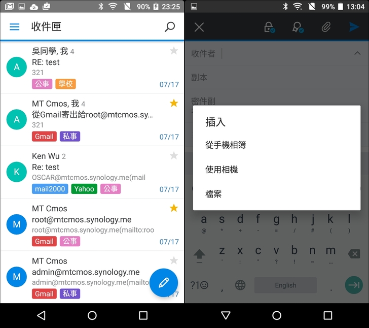 【▼】MailPlus App能設定您只要收到哪一些信箱或標籤的未讀通知,並能將行動裝置上的檔案附加到電子郵件上。