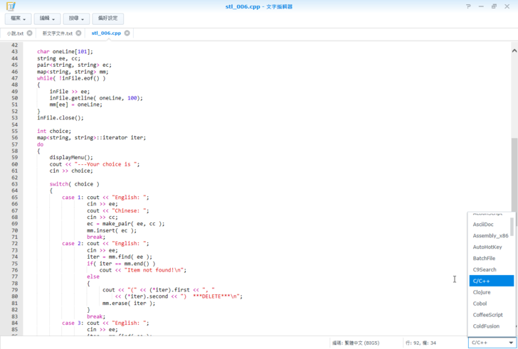 【▼】為什麼會需要顯示行數,這張圖道出小編的心聲阿,有寫過程式語言的朋友就知道,若沒有寫行數,幾萬行的程式Debug起來真的要人命。文字編輯器針對不同的程式語言也有不同的配色,關鍵字、函數都會特別標註,不用再額外裝什麼UltraEdit了。
