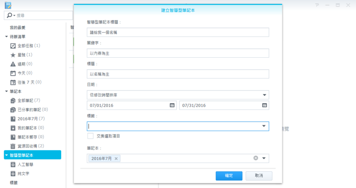 【▼】若覺得拖曳過去有點麻煩的話,那就使用智慧筆記本吧!智慧筆記本之所以聰明,還是得靠使用者篩選出來,這邊篩選條件能依標題、關鍵字、時間與標籤等,讓寫筆記不再擔憂整理的問題。