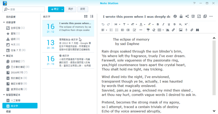 【▼】另外以筆記標題為純文字的也找出三篇,Note Station智慧筆記本都能幫我達成目的,算是蠻聰明的。