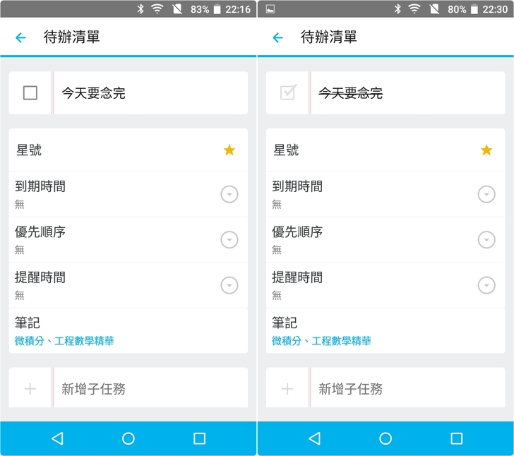 【▼】待辦事項的提醒相當有其實用性,能督促自己把事情快速完成。完成之後就會在標題上畫上一槓唷。