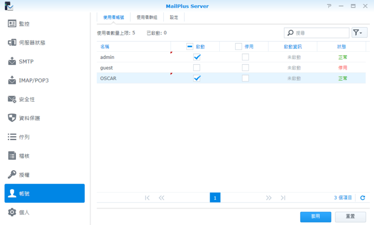【▼】接著就是建立使用者囉~選取MailPlus Server的帳號,這邊預設的帳號就是DSM帳號。