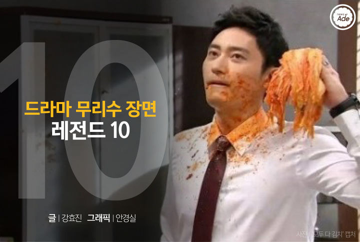 以往的「水耳光」已經過時了!圖中是晨間家庭劇《幸福泡菜店》的一幕。劇中的女婿在泡菜裡加入異物的行為惹怒了岳母,所以岳母一氣之下使出「泡菜耳光」,超~大力的一計扣殺,堪比溫布頓網球賽!XDD 令觀種傻眼的這一幕馬上成為全劇經典。(而之後更出現了義大利麵耳光和豬肉耳光呢!好煩喔XDD)