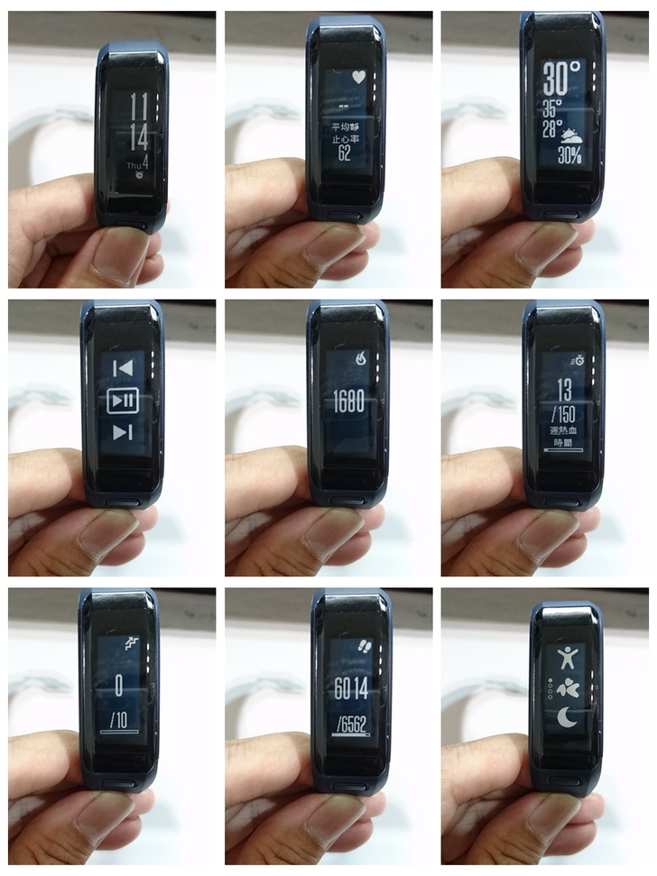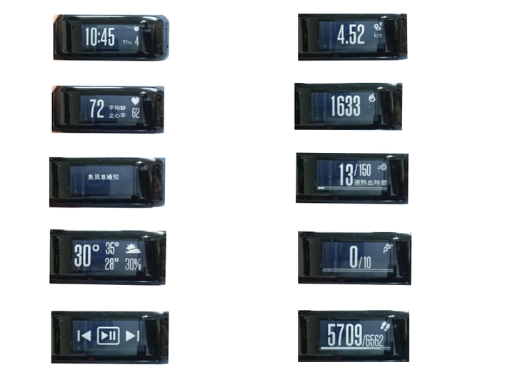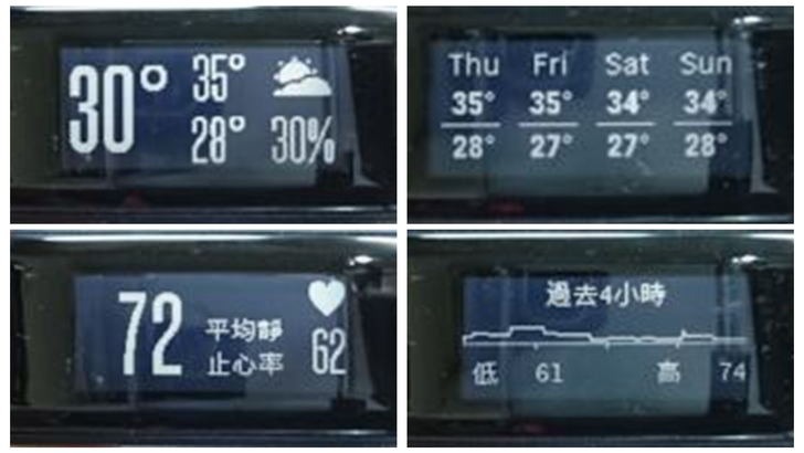 左邊截圖多為生活實用部份 :時間>心率>訊息>天氣>音樂控制