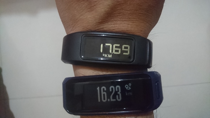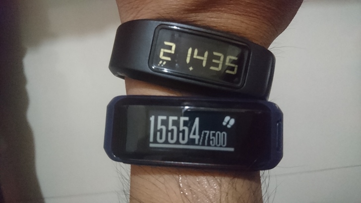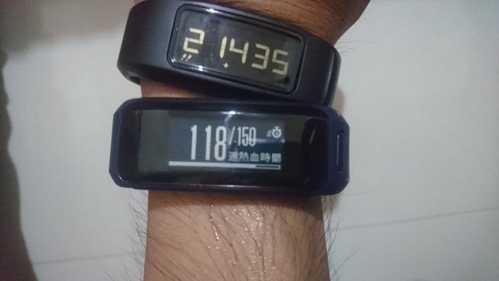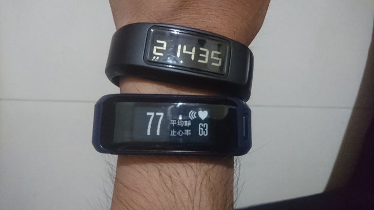 VIVOSMART HR 計步 (二支一起計,都會跳,但似乎有一些些的差異)