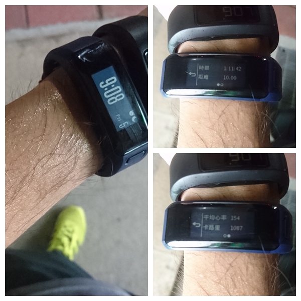 最後再看看手環上的顯示,10KM,就是比實際多1KM。(算是沒有GPS之下,還挺準的)