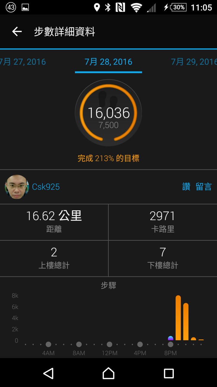 到家看一下成果,預估公里數還是VIVOSMART HR較少。(連同白天的加起來約16KM)