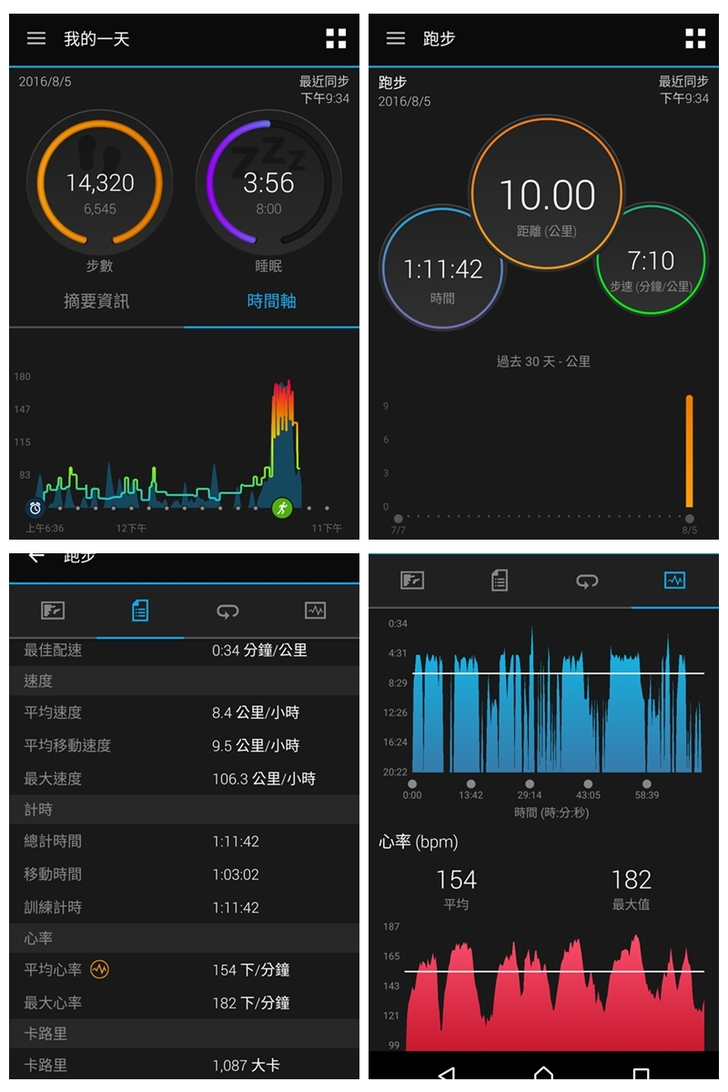 再看GARMIN APP,認定10KM,心率最大為182下/每分鐘。(前輩說過人的最大值公式為220-年紀,還真是滿準的)