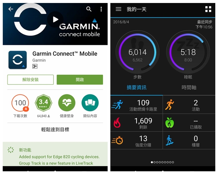先在ANDROID或IOS上找到"GARMIN CONNECT MOBILE,下載安裝它。(小編之前因VIVOFIT已裝過,且已登入過)