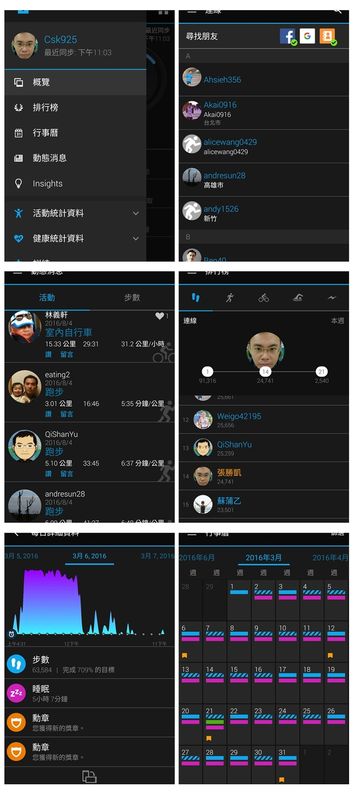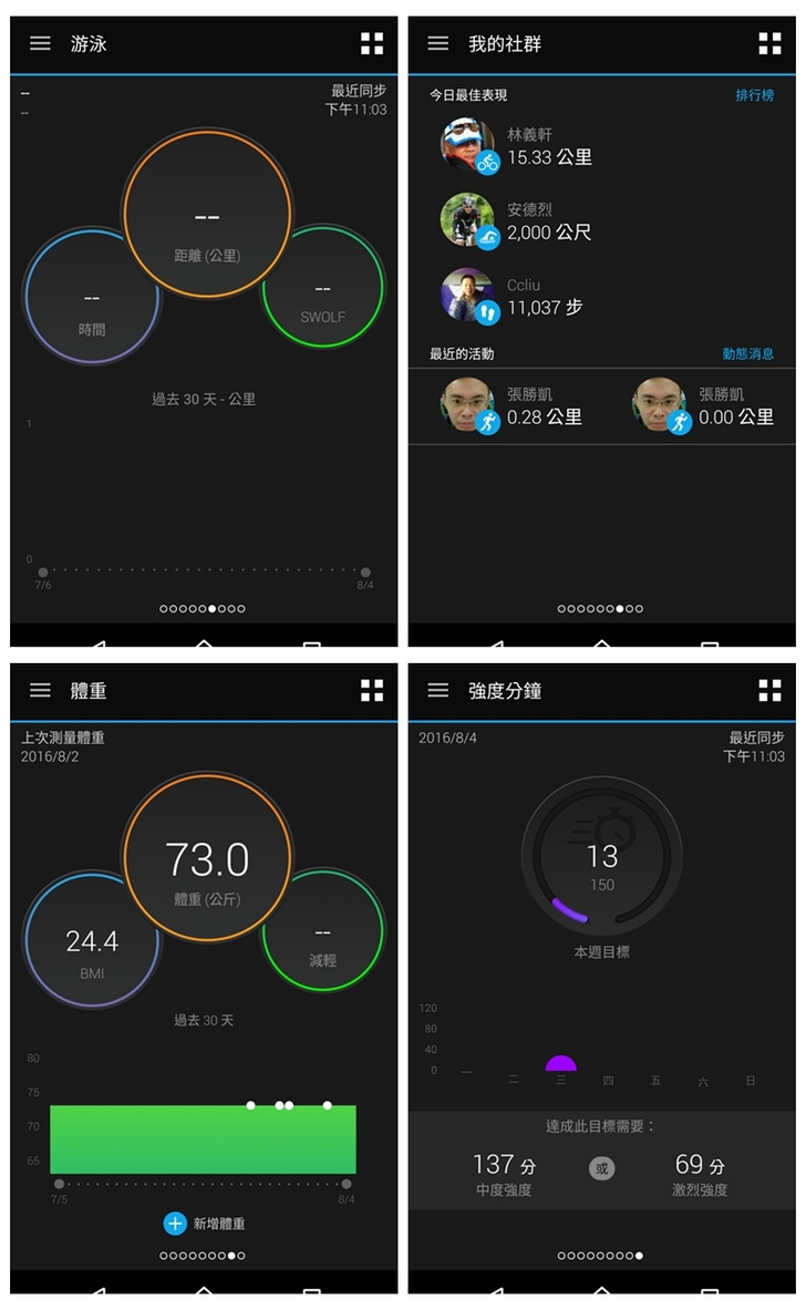上二個為游泳\我的社群(要有加一樣的此APP的好友就可以串連分享)。