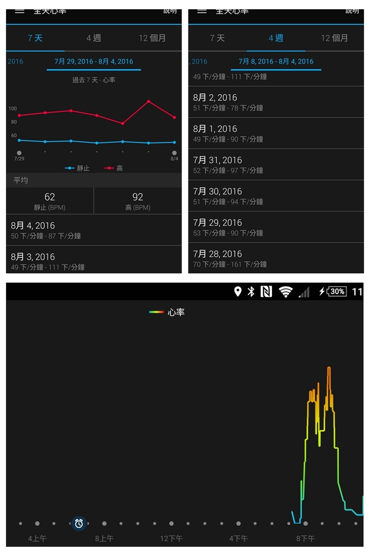 下為心率頁面,再點一下會有詳細一點四小時曲線。