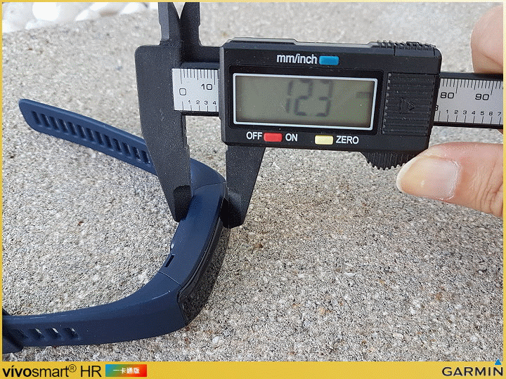 厚度方面在中間心率感應器處最厚約為 14.6 mm,兩側約為 12.3 mm。