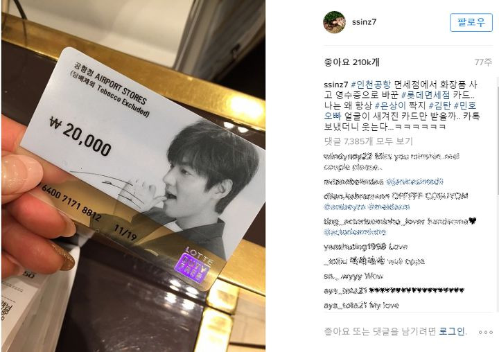 連下戲了還收到金嘆哥哥的照顧XDDD (其實是在免稅店購物時換到的李敏鎬購物卡啦 XDD)