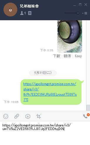 ▼透過複製就能將連接碼傳送給想要分享的對象,像是轉貼到LINE通訊軟體,或是透過EMAIL傳送出去,就能讓接收方,快速連結到你的Apollo Cloud上,分享你共用的檔案。