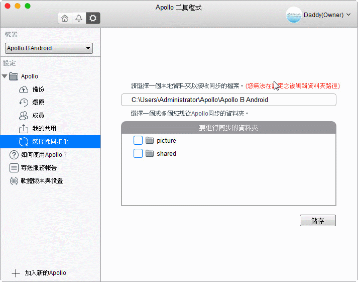 ▼可以設定多個同步資料夾,能夠方便將Apollo Cloud和所指定的目錄夾檔案,進行資料同步,確保資料安全不遺失。