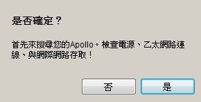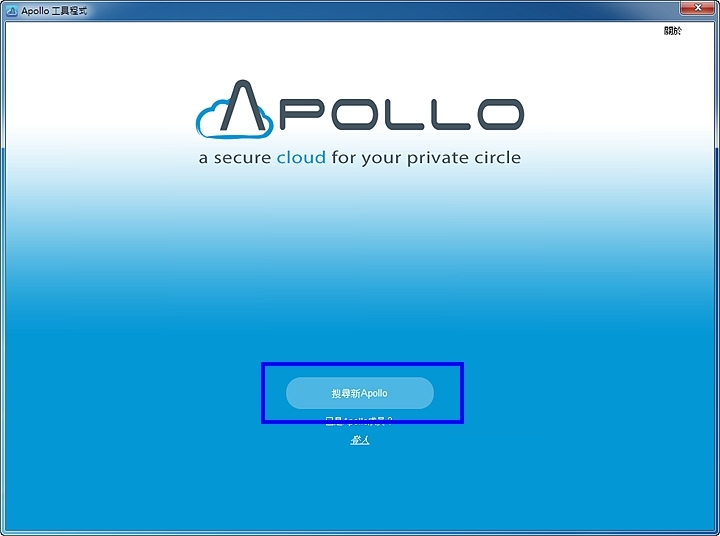 ▼當安裝好電腦版本的Apollo utility軟體後,因為是第一次設定Apollo Cloud主機,所以點選"搜尋新Apollo"這個選項。
