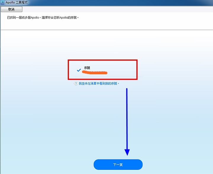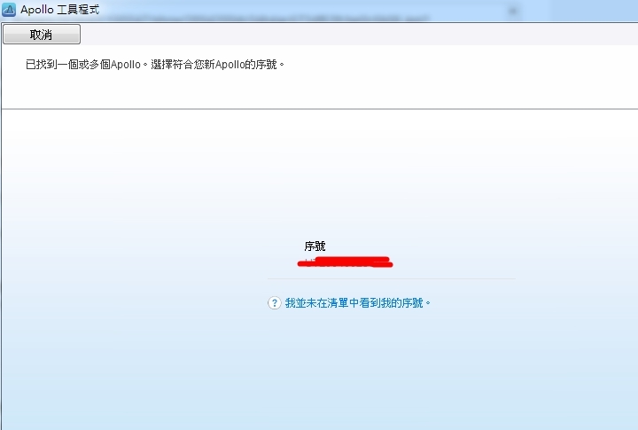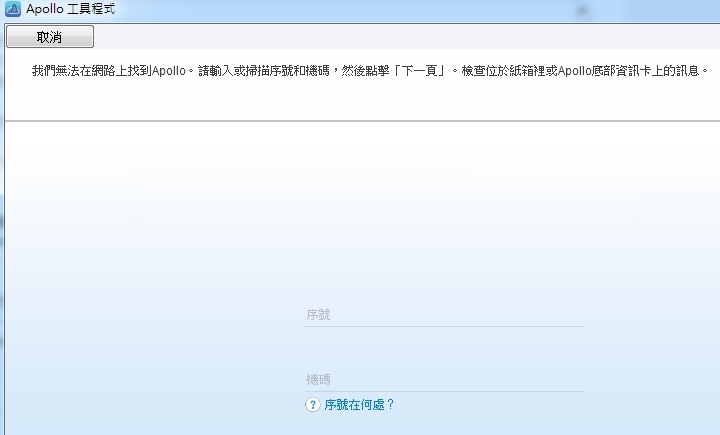 ▼如果"自動方式"搜尋不到你的Apollo Cloud主機時,那就必須透過手動輸入序號方式來找到Apollo Cloud主機,所以之前提到的那張序號卡,這時候就顯得很方便了。